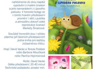 A to není všechno! Markéta Šmalcová dlouhodobě spolupracuje s hercem Davidem Vackem, který je návštěvníkům festivalu dobře známý díky scénickému čtení. Společně vydali knihu Příběhy z lipového palouku, a právě tu budete moci zažít naživo v první červnový týden. Scénické čtení v podání herců Davida Vackeho a Terezy Poláškové (případně Barbory Moučkové či Pavlíny Hejcmanové) se uskuteční v dopoledních i odpoledních hodinách a slibuje jedinečný zážitek pro malé i velké posluchače.